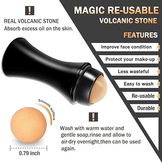 - Real volcanic stone. This face roller is made of real volcanic stone, its unique absorbing properties soak up oil like a magnet and mattify your skin instantly.