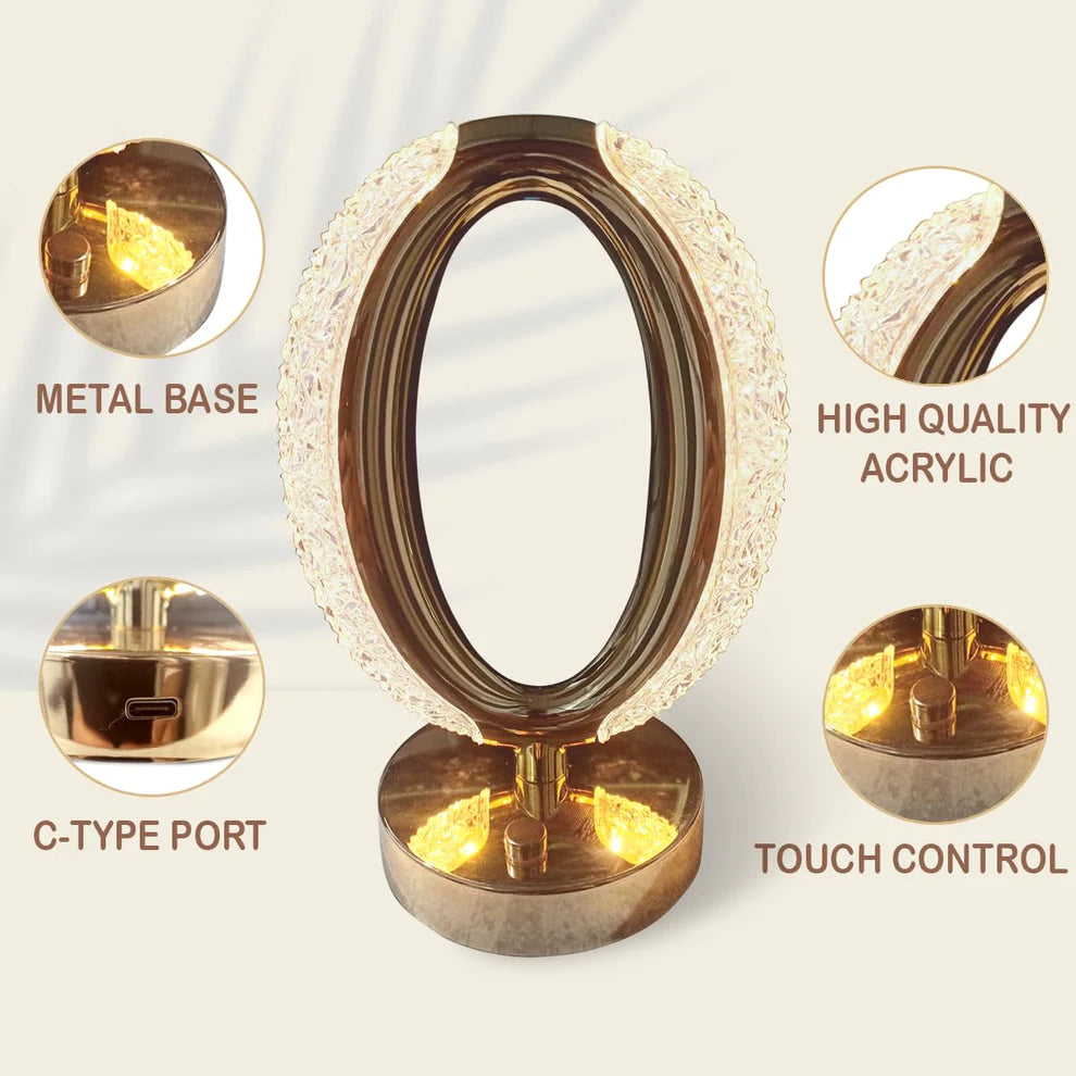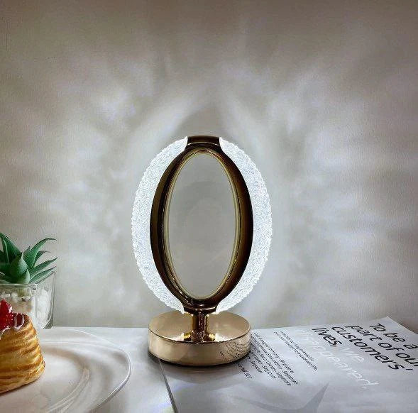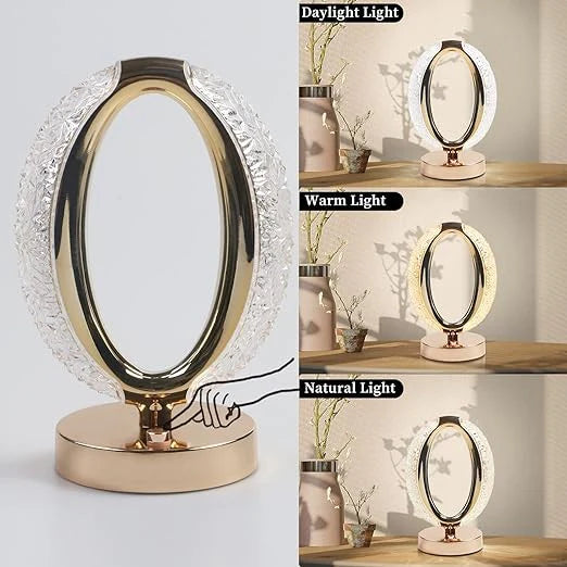 This is a luxurious table lamp and bedroom circular desk lamp that is rechargeable, the light can also be used for the living room tableside and as a night light decoration.