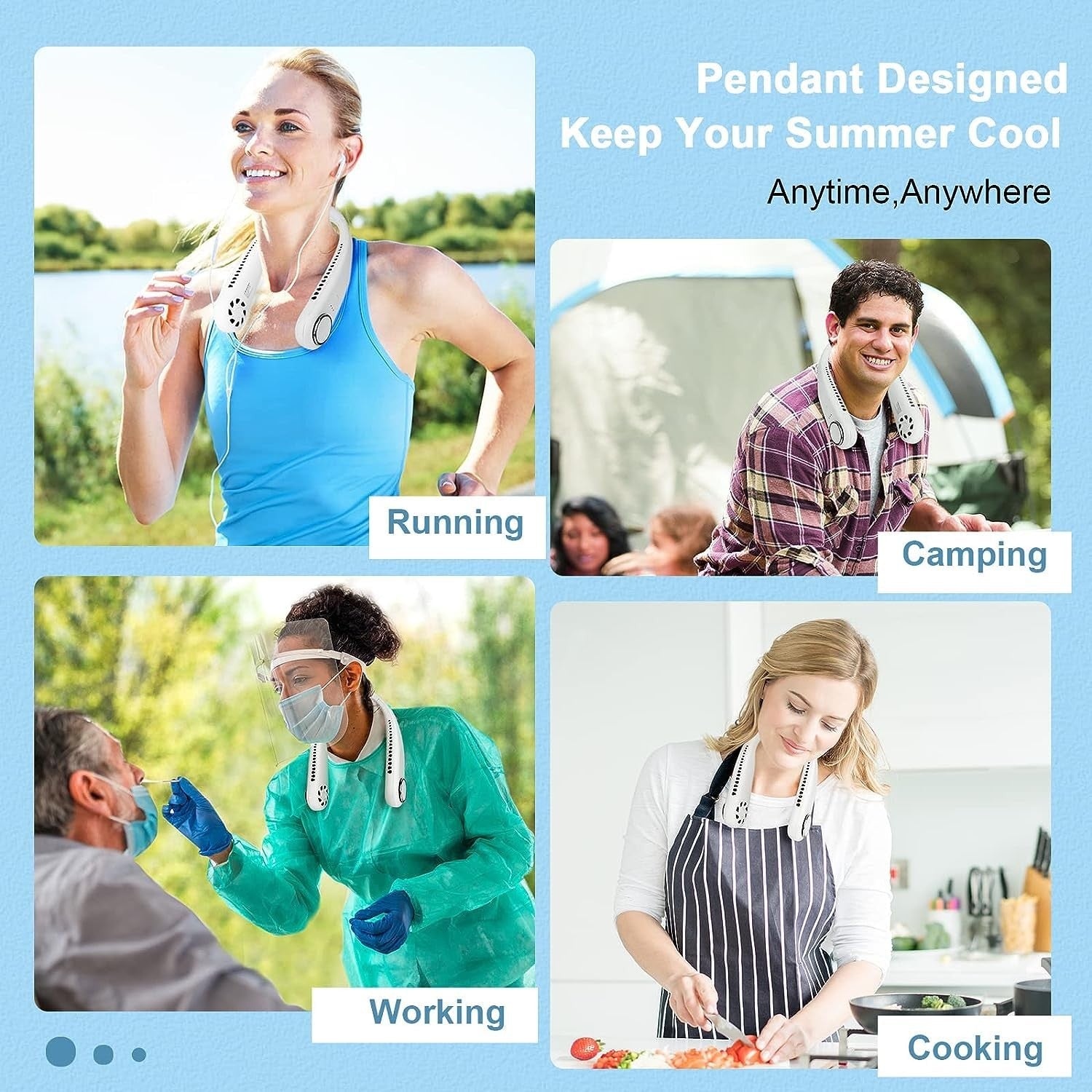 ✅ SAFETY & 22 AIR OUTLETS: A novel neck fan that can send the wind without clogging your hands by simply placing it on your neck. Designed without wings, it can be used safely by children and the elderly. When using the fan, you don't have to worry about your hair getting caught on the fan blades. With 22 air outlets around the neck, it can be used for the entire face around, which products enough air to keep you cool always. It is also ideal as a companion for working in hot weather.